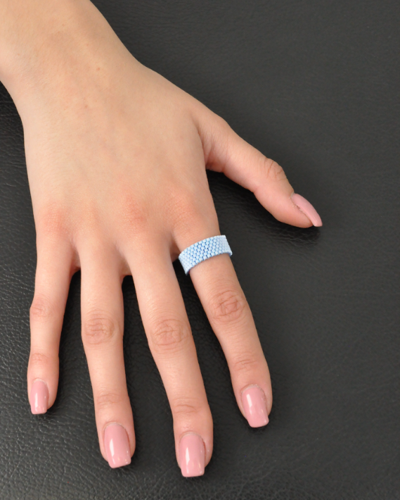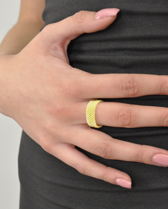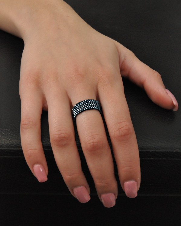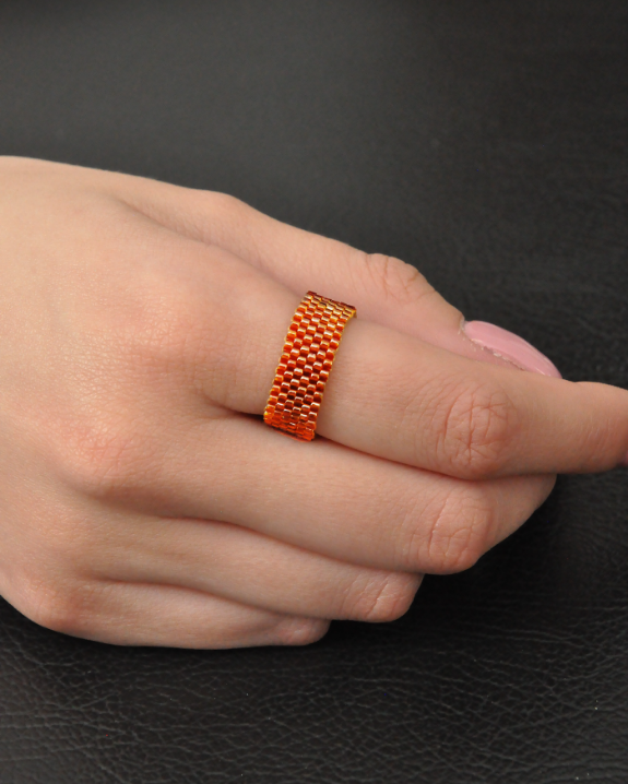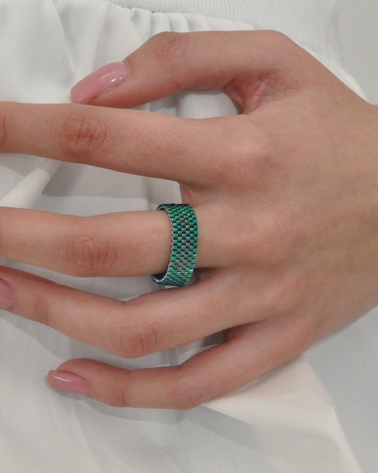 Realizzato interamente a mano, nasce dalla tessitura minuziosa di minuscole perline in vetro Miyuki, che si uniscono l’una all’altra per formare una trama simile a un tessuto prezioso, flessibile e incredibilmente piacevole da indossare.