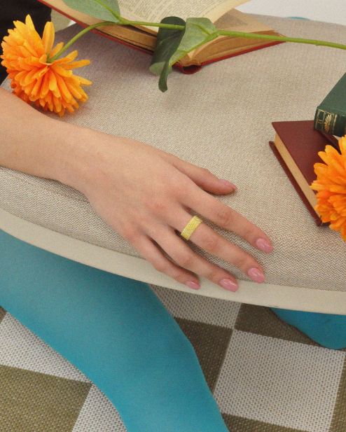Questo anello a fascia è un morbido abbraccio di luce per le tue dita.