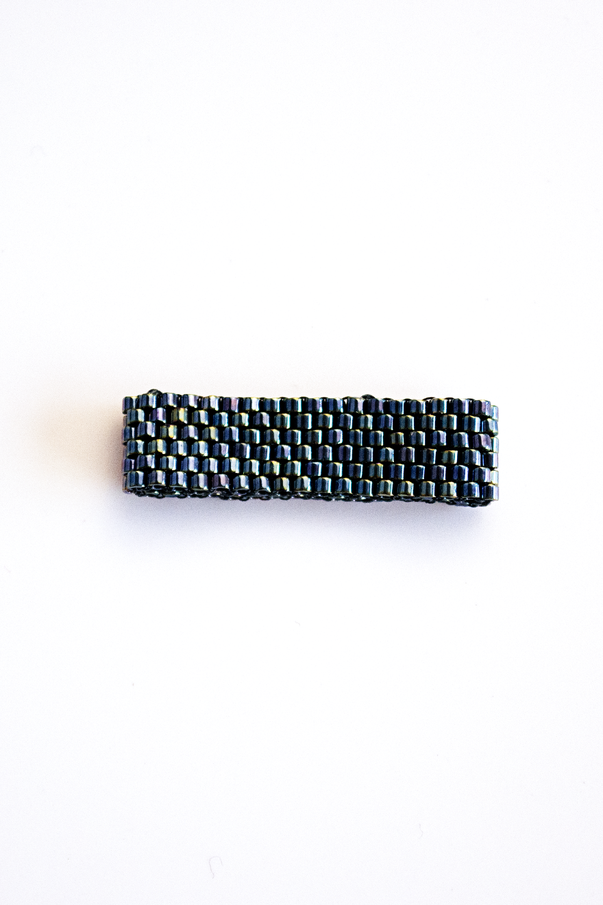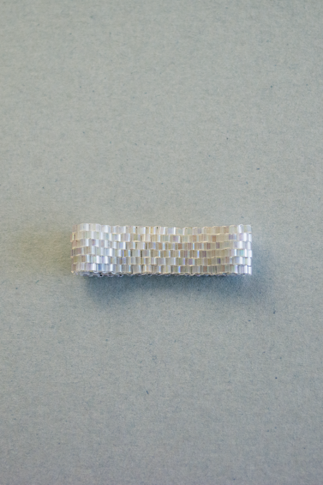 Eleganza e artigianalità si incontrano in questo anello a fascia ricamato a mano con perline di vetro giapponese Miyuki.