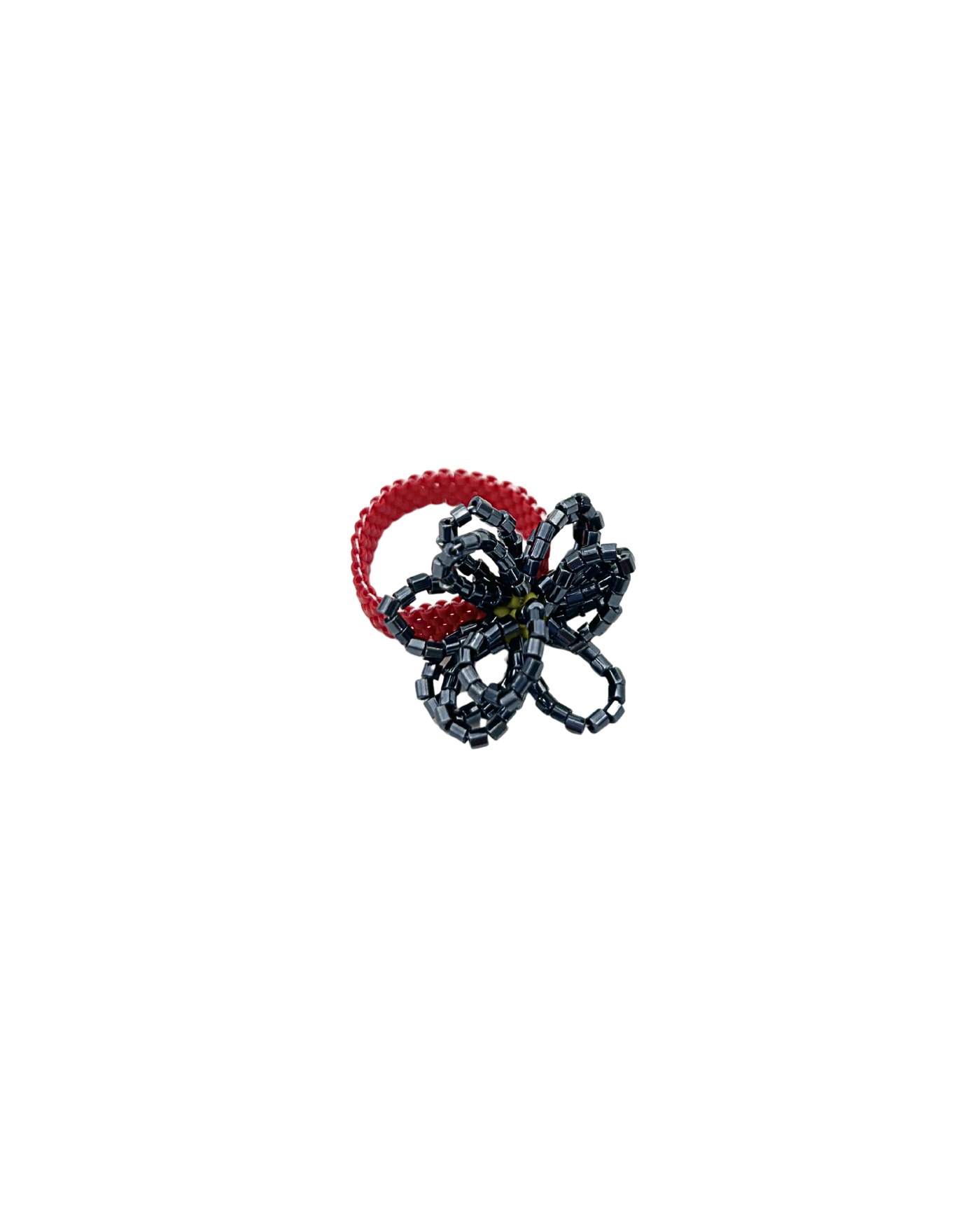 Realizzato interamente a mano in Italia, l’anello nasce dalla tessitura minuziosa di centinaia di perline Miyuki di altissima qualità, celebri per la loro precisione millimetrica e la brillantezza dei colori.