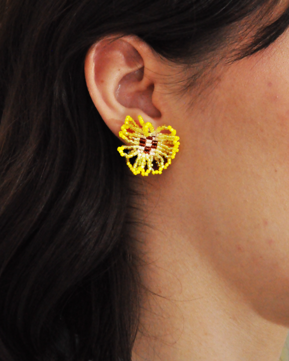 Orecchini a lobo ispirati alla forma dei girasoli, realizzati per la collezione Hortensia, dedicata alla flora primaverile.